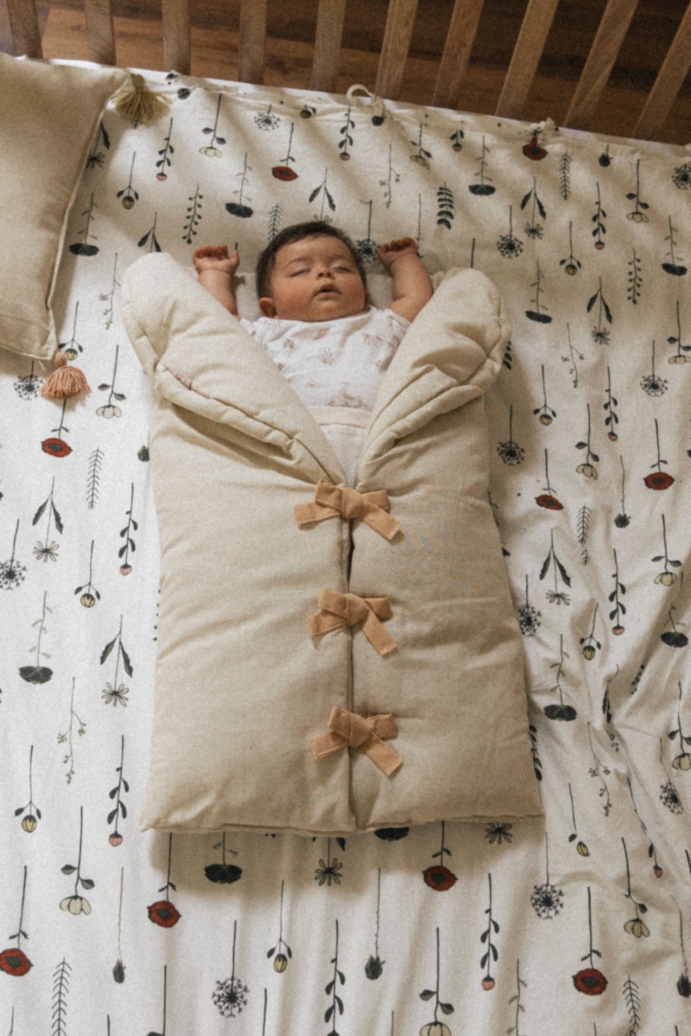 El arrullo o sleeping en lino natural sellado de Aluna es un prototipo de sutileza. Su parte interna y externa son en la misma tela natural. Su interior es confortable y cálido. cuenta con tirantes externos que aseguran su estadía. Su parte baja es cocida con doble puntada por eso es sellad. Su albergue es inspirador en el útero materno, su primera casa. aquí puede vivir el cambio del trance respetuosamente. Por eso está pensando para beneficiar sus primeros meses principalmente. Es ideal para el sueño, la seguridad corporal y calidez. Representa una sensación de hogar y de calor materno más que ninguna otra pieza. El cambio de espacio con amor en su máxima expresión a través del confort prematuro sin comprometer el calor materno.