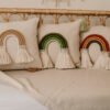 El cojín cama cuna arcoíris artesanal de Aluna es una mezcla de bohemio e hippie. Con cierre al costado para facilidad de lavado. Su uso muestra la belleza de lo hecho a mano y versatilidad en uso. Enriqueciendo el espacio en colores armoniosos y acabados limpios. Representa un estilo de adorno desde lo artesanal y ambientador.