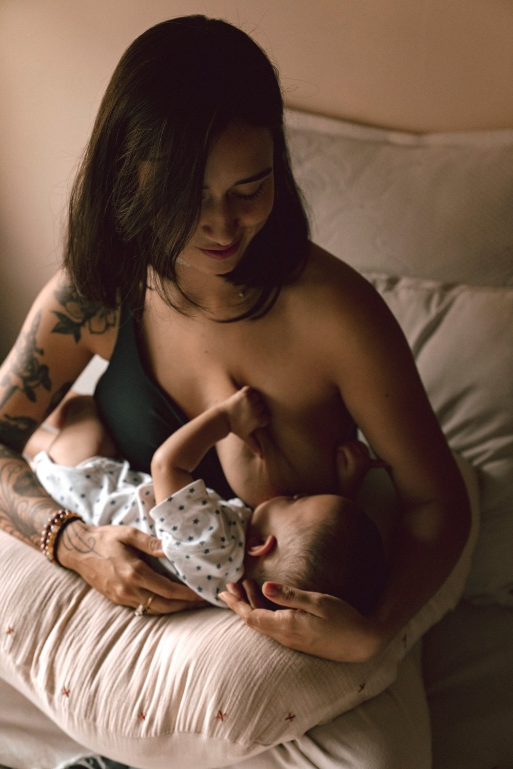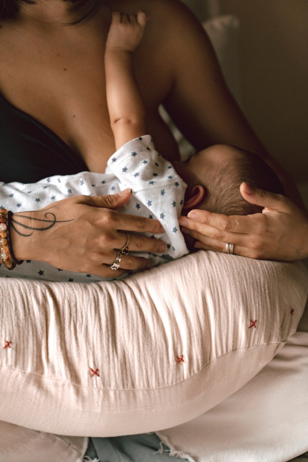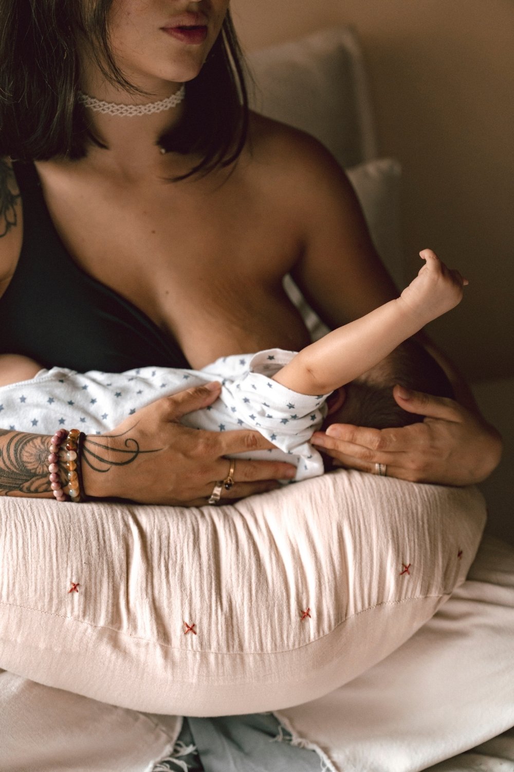 Su relleno y tamaño es generoso, expansivo y firme. Cuenta con un peso ligero. Es desenfundable, ayudando el cierre a su fácil y continuo lavado. Sus usos son alternos y variados. Su apoyo es pensando para mamá principalmente, reposando en el las fuerzas innecesarias post parto, que están distribuidas en todo el cuerpo femenino, esencialmente caderas, brazos y vientre. Efectuando positivamente a la madre y por consiguiente al bebé. Representa una sensación de autocuidado físico y de lactancia amorosa por un vinculo sano entre madre e hijo.